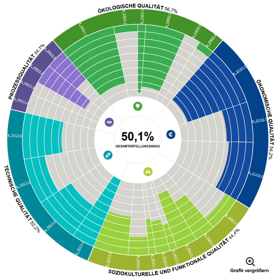 Die ganzheitliche Bewertung des Projekts umfasst die Standortanalyse sowie die technische und prozessuale Qualität, um eine umfassende Nachhaltigkeit im Lebenszyklus des Gebäudes zu garantieren.